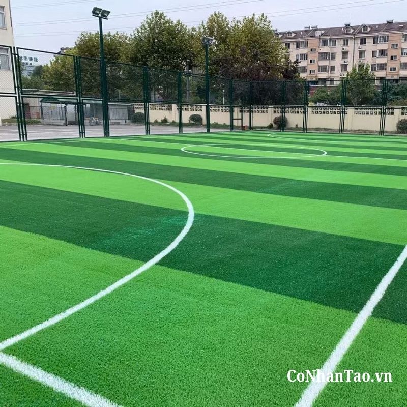 Sự phối hợp giữa hai tông màu xanh đậm và xanh non mang lại vẻ ngoài tươi mới cho sân bóng. Đặc biệt, sợi cỏ được sản xuất từ nhựa nguyên sinh có bổ sung hoạt chất chống tia UV (tia cực tím). Điều này giúp mặt sân không bị bạc màu, giòn gãy dưới cái nắng gay gắt của khí hậu Việt Nam.