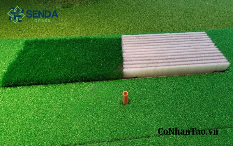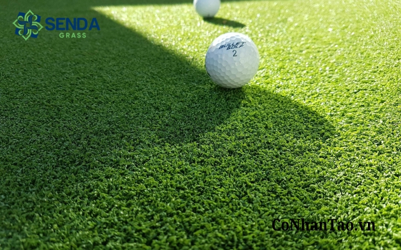 Bên cạnh đó, cỏ nhân tạo có khả năng sử dụng liên tục với tần suất cao hơn mà ít bị ảnh hưởng bởi thời tiết. Đây là ưu điểm rất lớn với các khu vực tập luyện như putting green, sân tập golf mini, khu vực trải nghiệm trong nhà hoặc ngoài trời có mái che. Dù nắng nóng hay mưa nhiều, bề mặt cỏ vẫn giữ được độ ổn định tốt hơn và không bị lầy lội như cỏ tự nhiên.