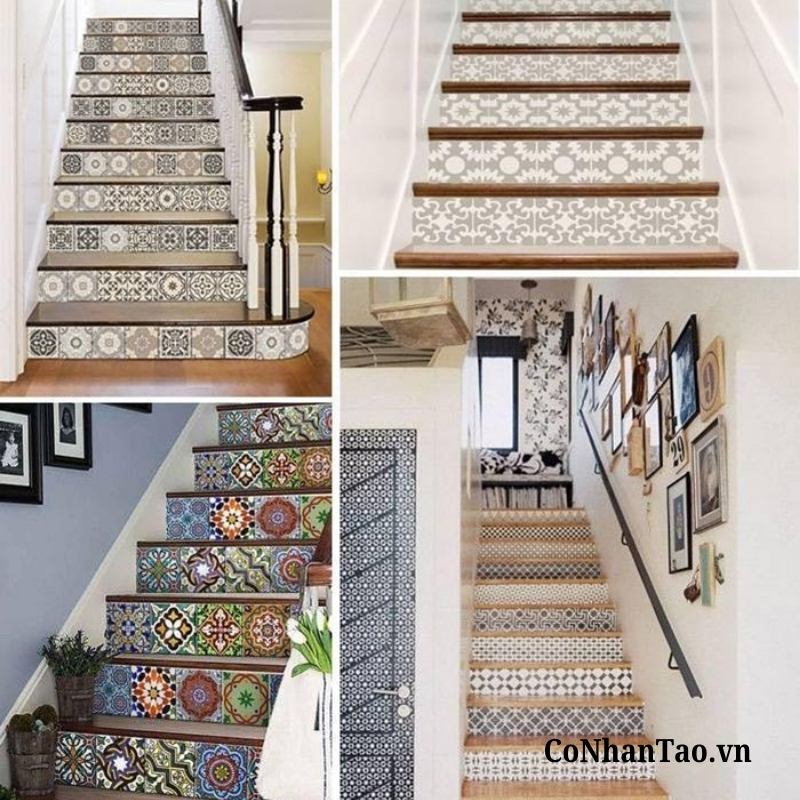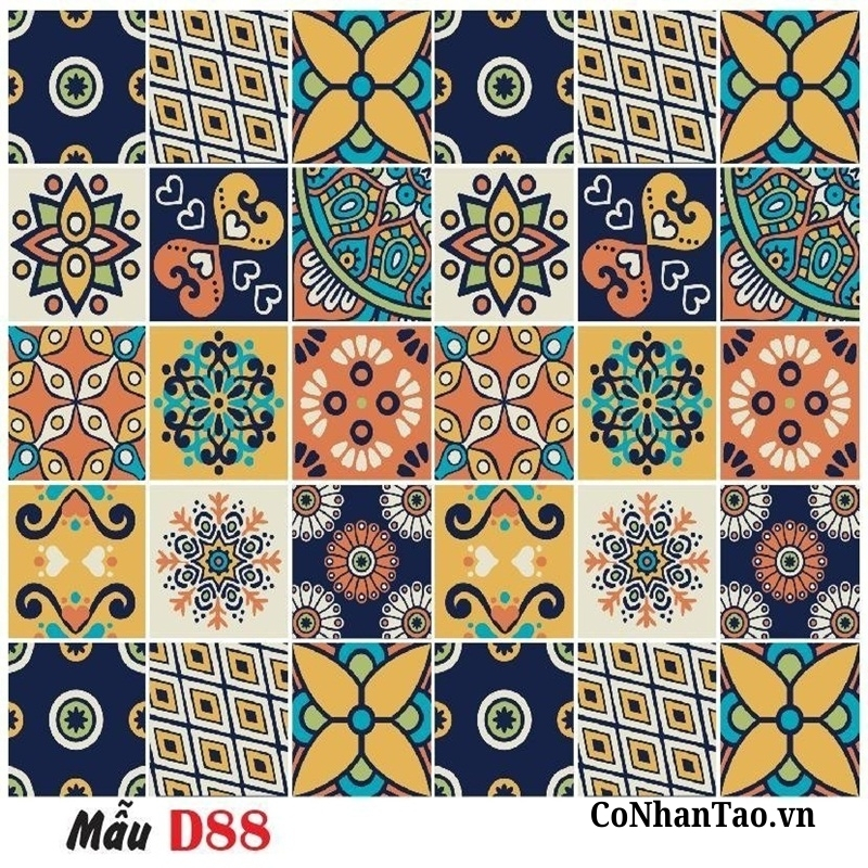 - Quy cách: Set gồm khoảng 30 ô gạch bông, chia thành 2 tấm dán