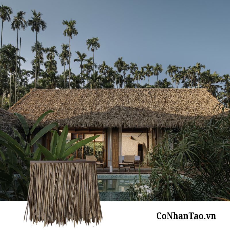 Khác với mái lá tự nhiên dễ mục nát và tốn chi phí bảo trì, HM02 giữ được hình dạng ổn định trong thời gian dài, hạn chế ảnh hưởng bởi mưa nắng, gió lớn và độ ẩm cao. Nhờ đó, công trình vẫn giữ được vẻ đẹp tự nhiên nhưng không phát sinh chi phí thay thế thường xuyên.
